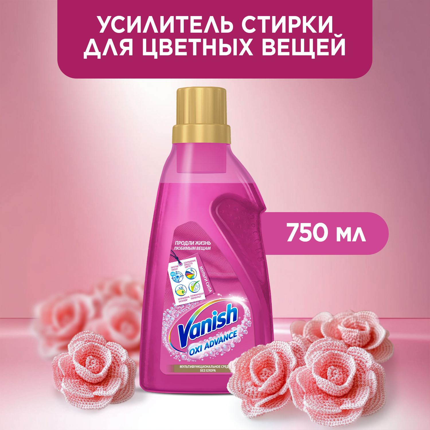 Кислородный пятновыводитель без хлора, усилитель стирки для цветных Vanish Oxi Advance Мультисила, гель, 750 мл информация: