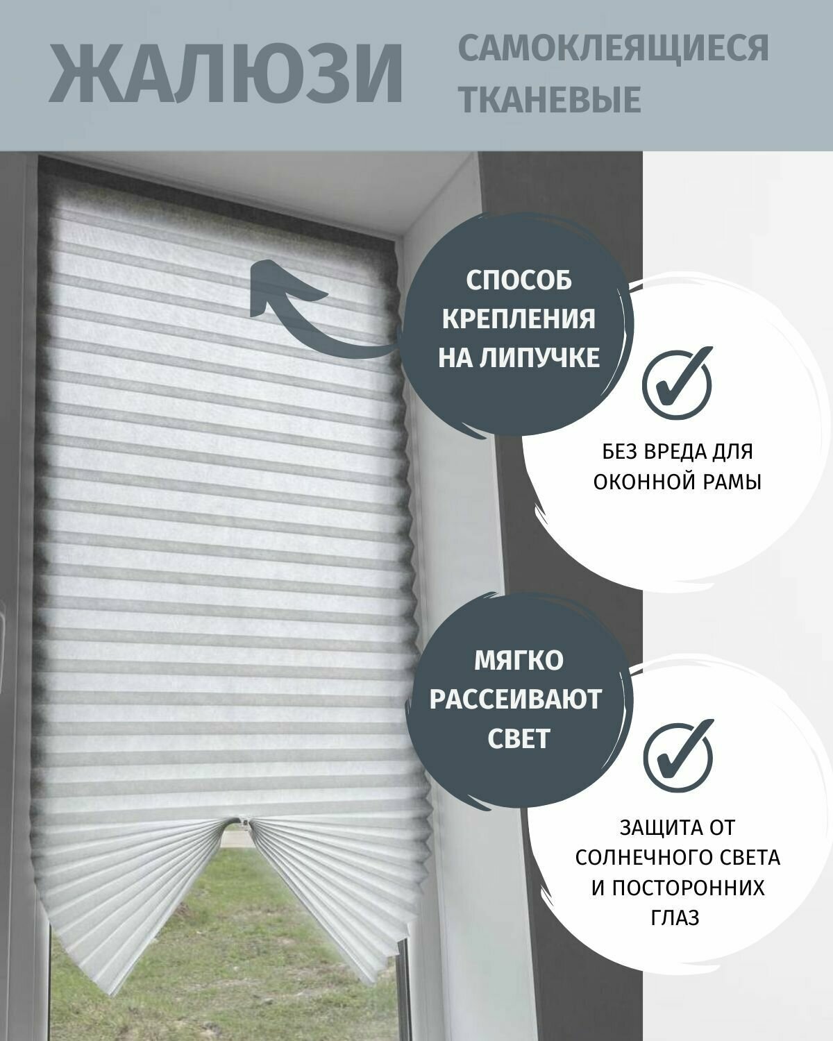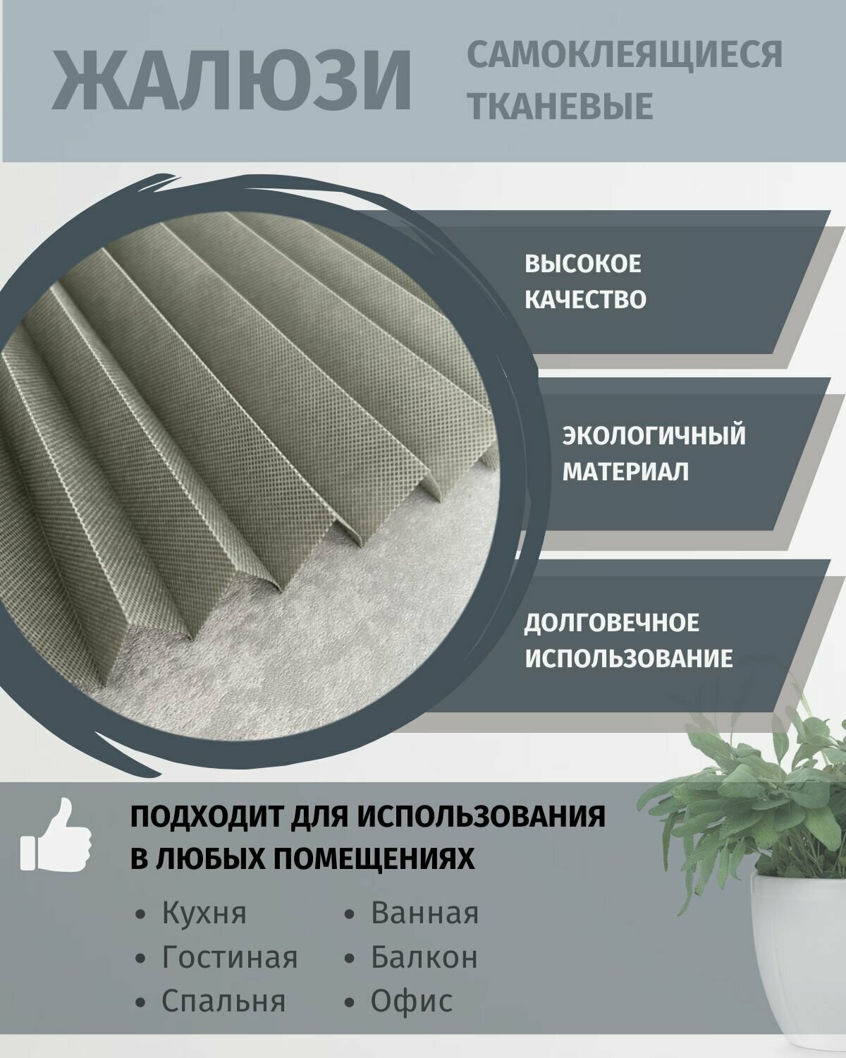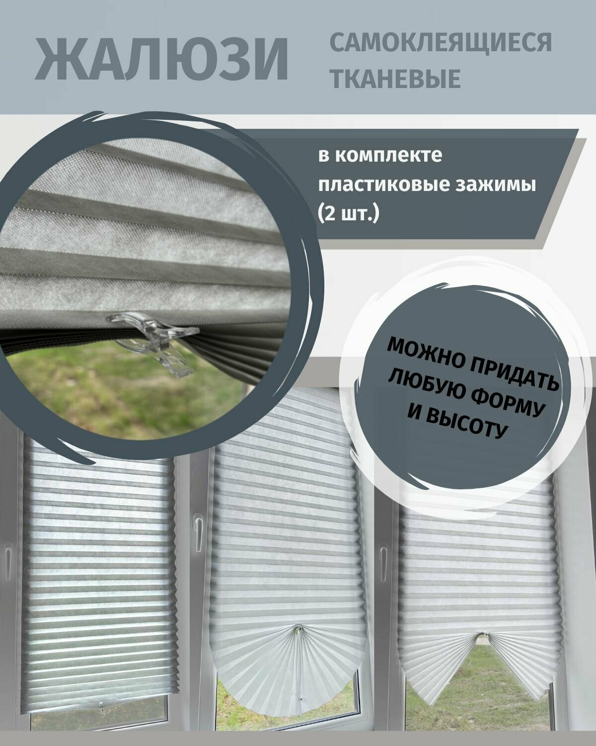 Жалюзи плиссе на окна самоклеящиеся серый 90х180, шторы плиссе на липучке, тканевые жалюзи, горизонтальные жалюзи информация:
