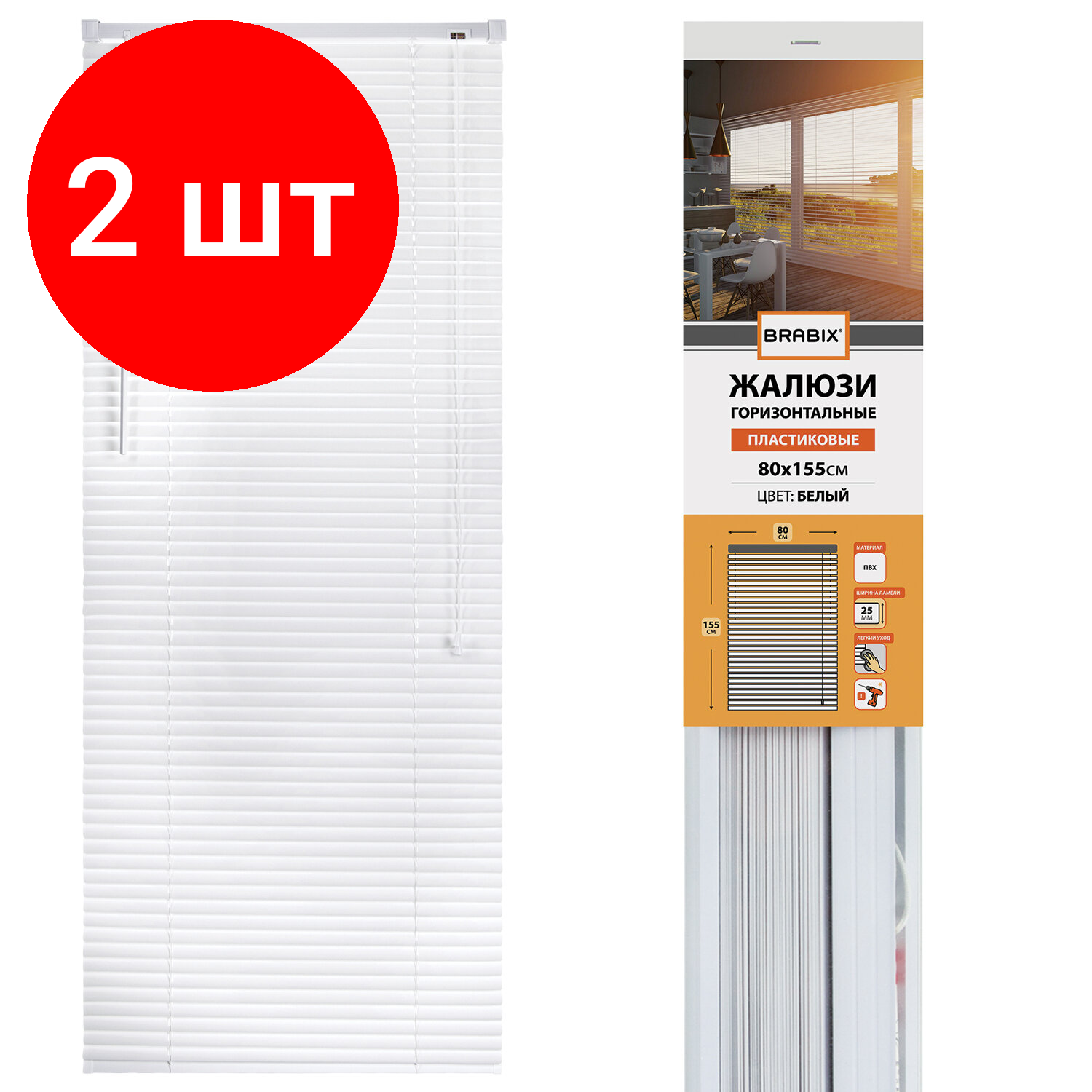 Комплект 2 шт, Жалюзи горизонтальные BRABIX 80х155 см, пластик, цвет белый, 606026 информация: