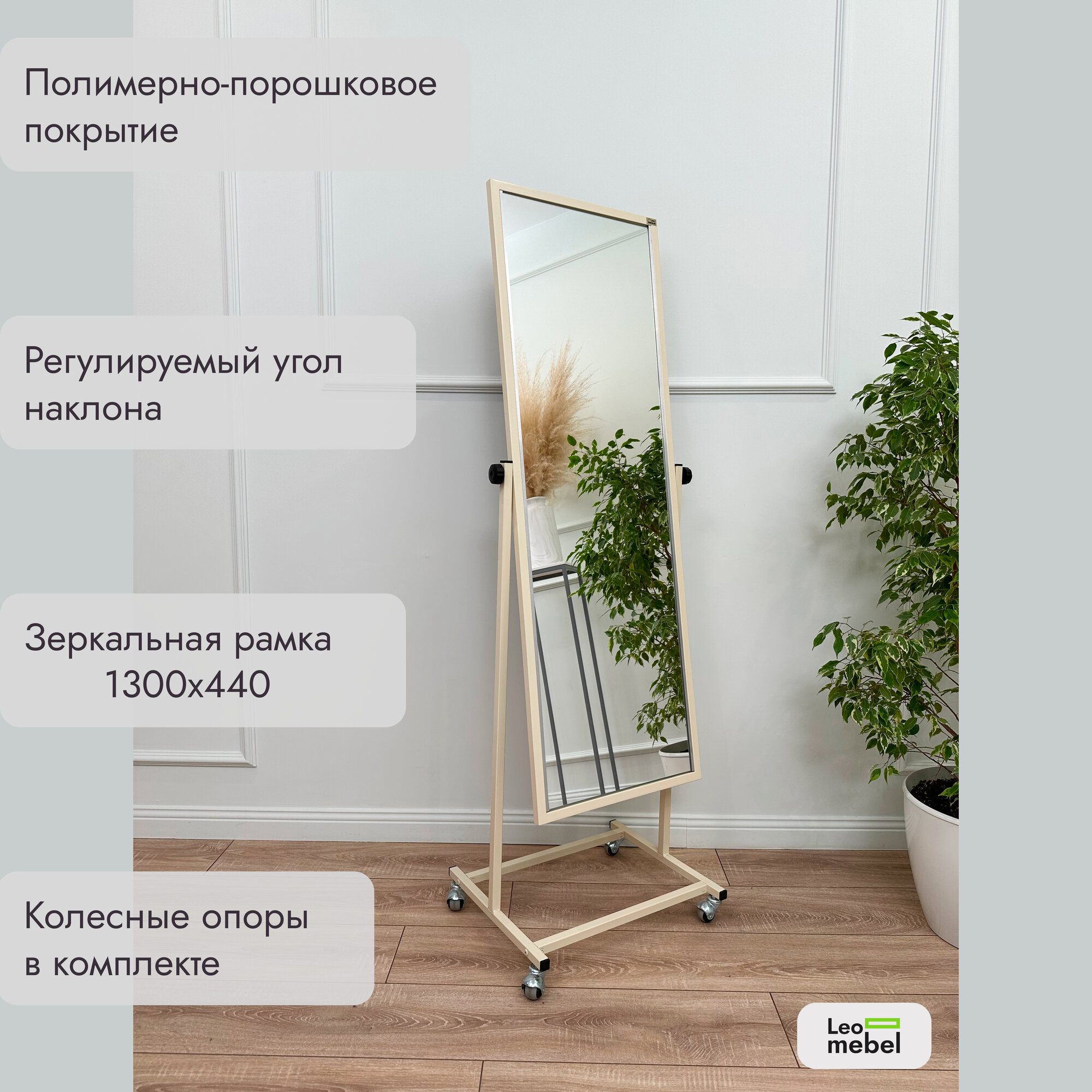 Зеркало напольное в полный рост Леомебель на колёсиках 160х49 Бежевый информация: