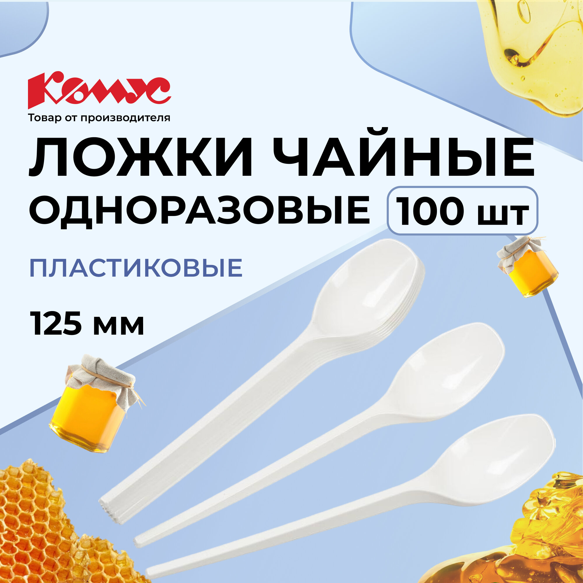 10 цен на HoReCa, ложка чайная одноразовая ПС белая, 125 мм, 100 шт