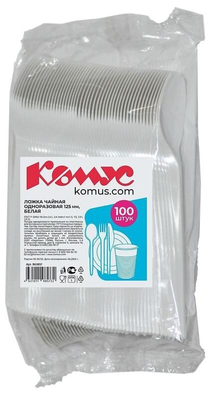 HoReCa, ложка чайная одноразовая ПС белая, 125 мм, 100 шт информация:
