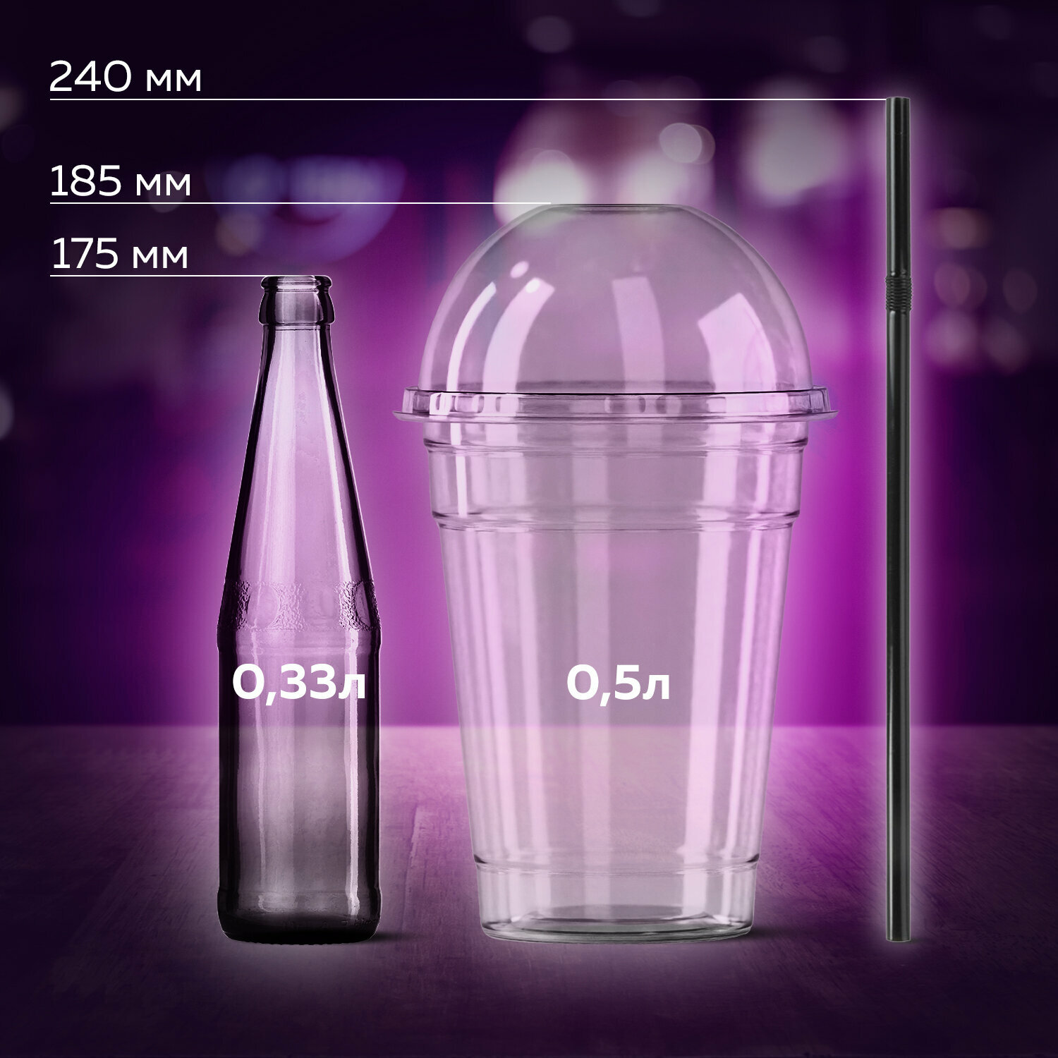 Контейнеры одноразовые пластиковые Каштан Тренд черные с прозрачной крышкой 500 мл, набор контейнеров 23 шт ( + 2 шт в подарок)