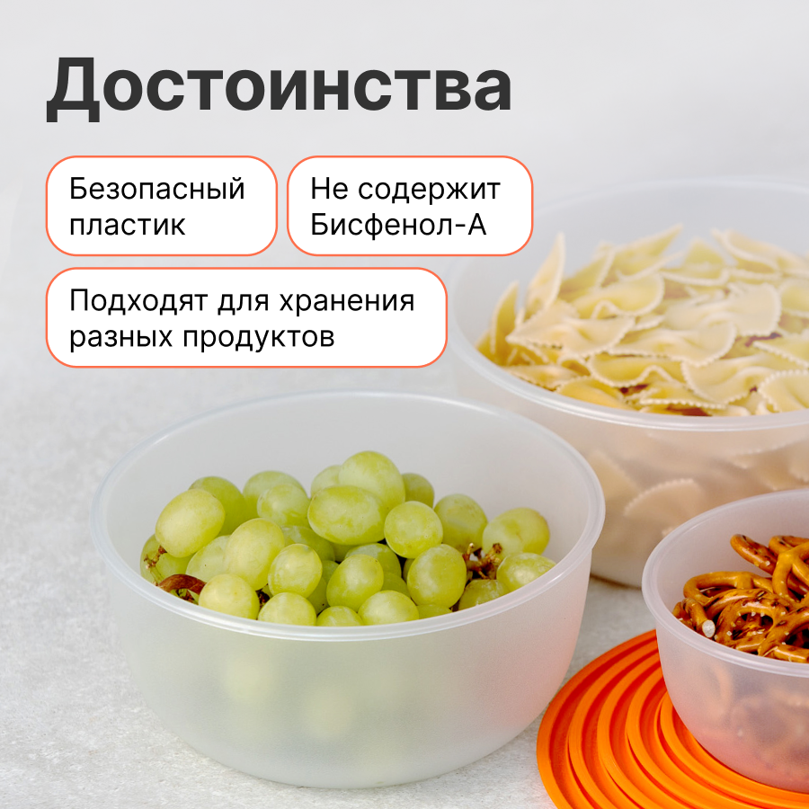 Отзывы на Контейнер для еды Редда, набор пищевых контейнеров с крышками, ланч бокс, оранжевый, 5 штук