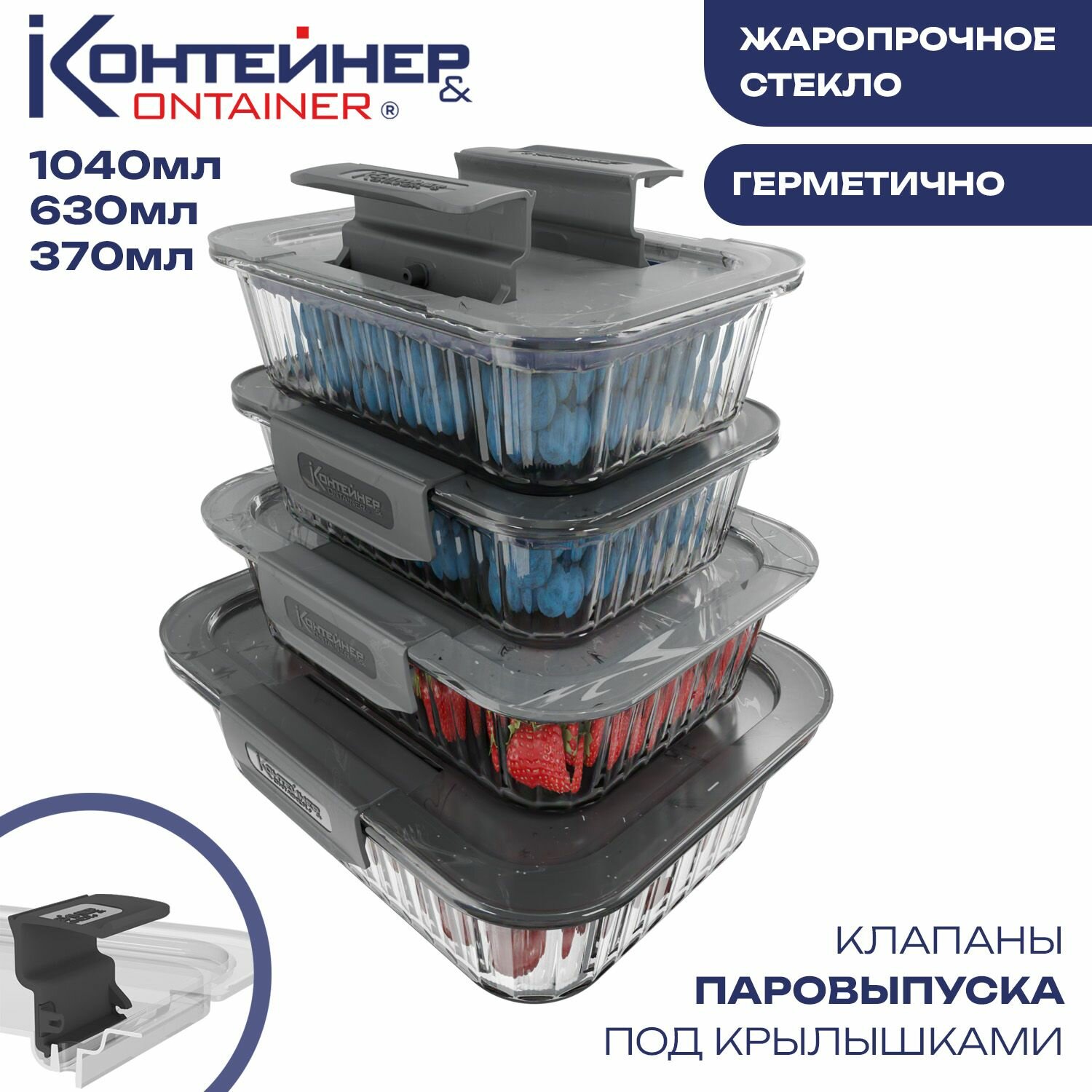 10 цен на Стеклянные контейнеры для еды Контейнер&Container, 4 шт