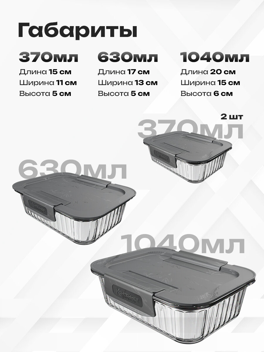 Набор стеклянных контейнеров для еды Контейнер&Container, 3 шт, 630 мл, 1040 мл, цвет мрамор 899 ₽