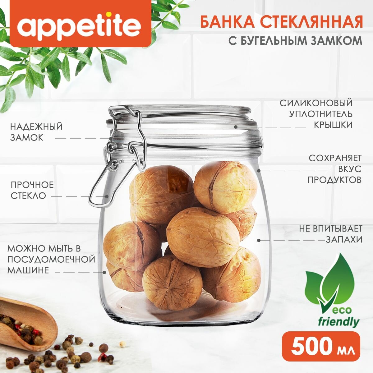 Банка стеклянная круглая 500мл ТМ Appetite информация: