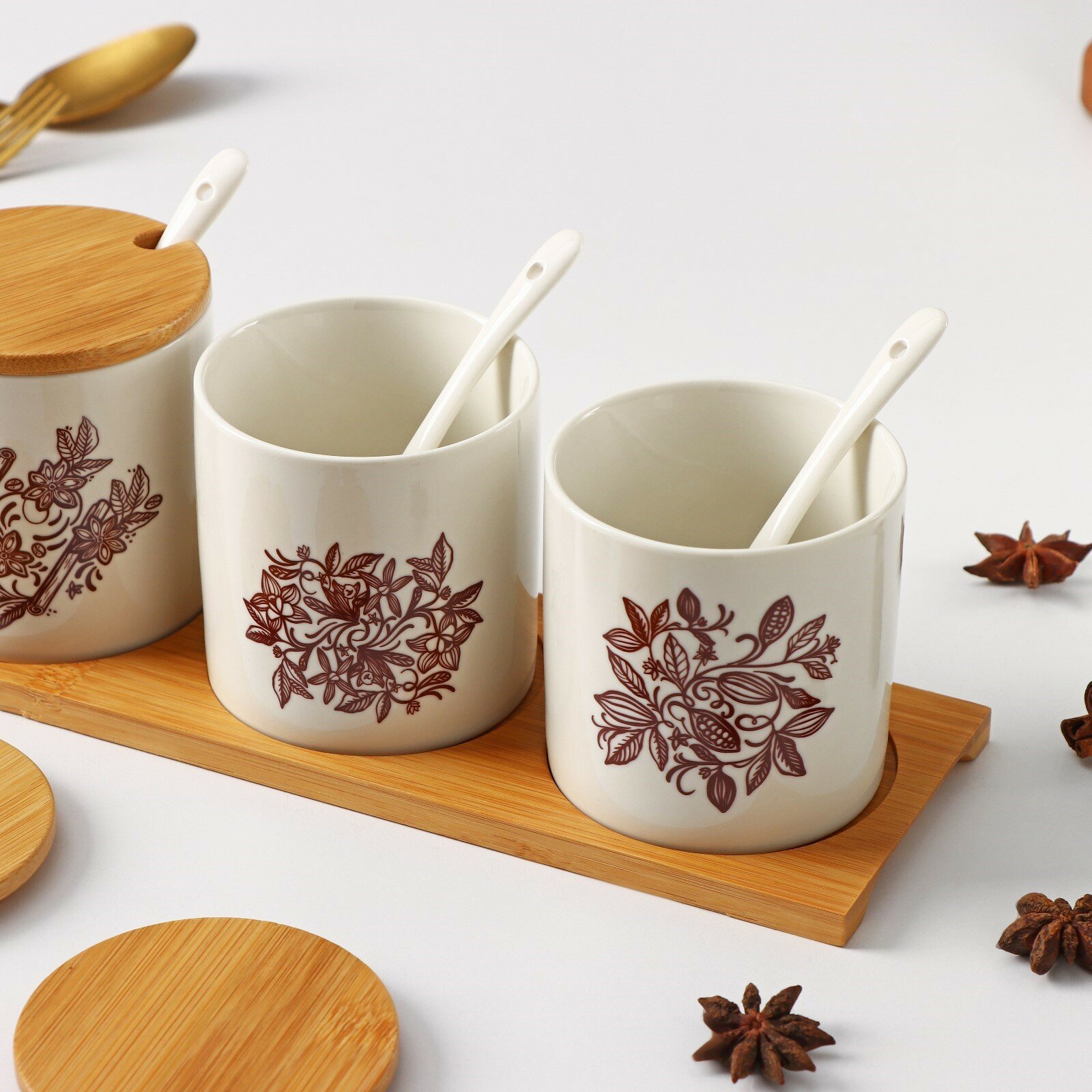 | Комплектация | Банки - 3 шт, крышки, ложки, подставка - 1 шт |