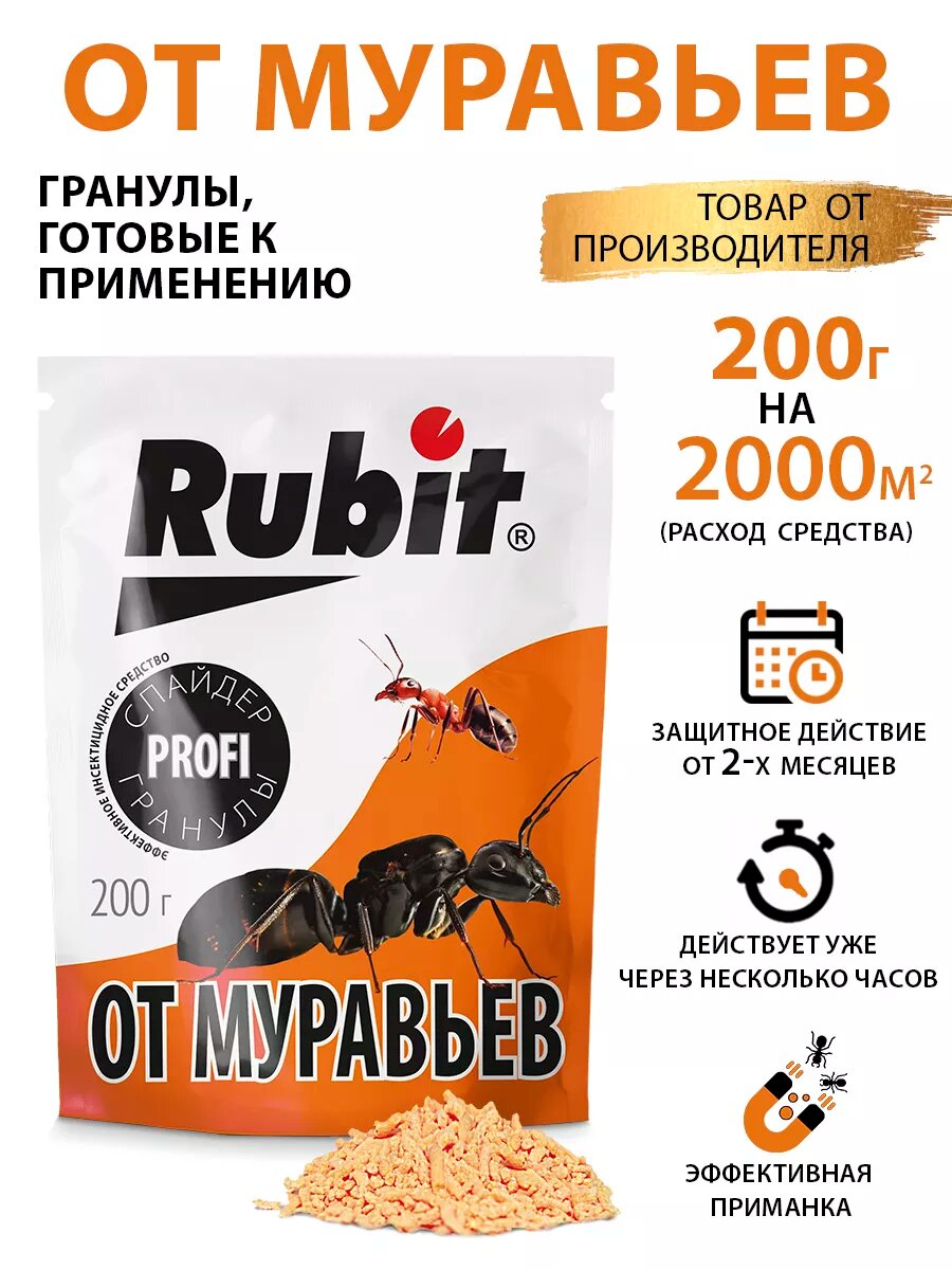 Средство от муравьев гранулы спайдер 200г Рубит информация: