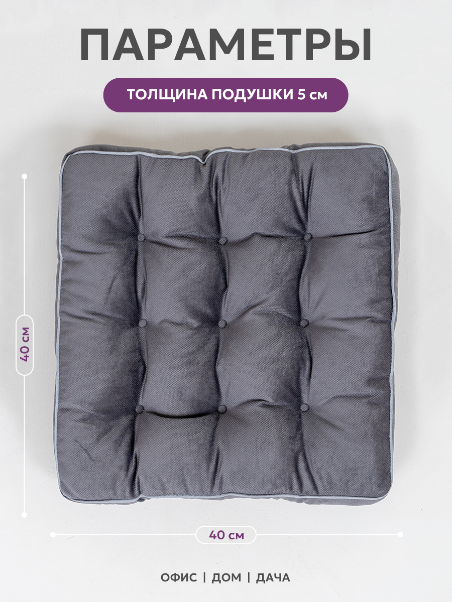 Подушка на стул Bio-Line /Декоративная подушка/Сидушка высоким бортом/Табуретник/Квадратная/40х40 см/серый