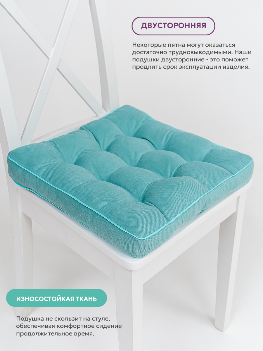 Подушка на стул Bio-Line /Декоративная подушка/Сидушка высоким бортом/Табуретник/Квадратная/40х40 см/бирюзовый