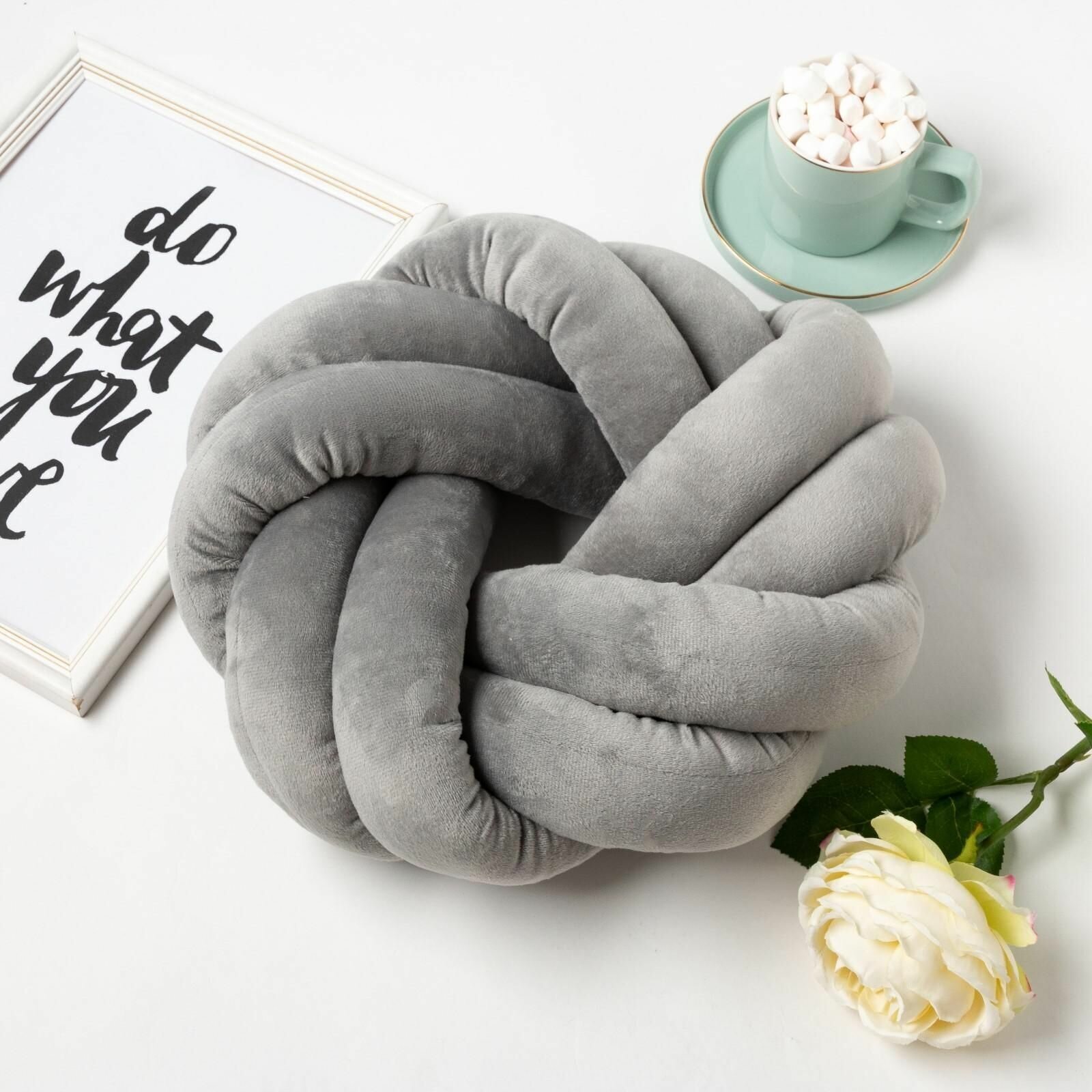 Подушка-узел «Этель», d=33см, цвет серый, велюр