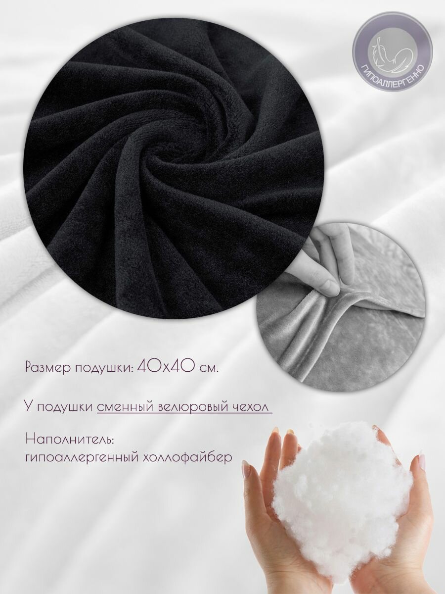 Подушка декоративная 40 на 40 см на диван, кровать, подоконник, на кресло, на качели, в салон, черный информация: