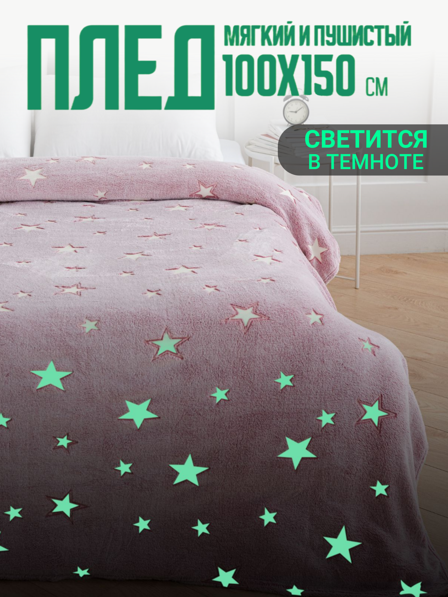 Отзывы на Плед 100х150 светящийся в темноте Павлина Звезды розовый (светонакопитель), 1-спальный