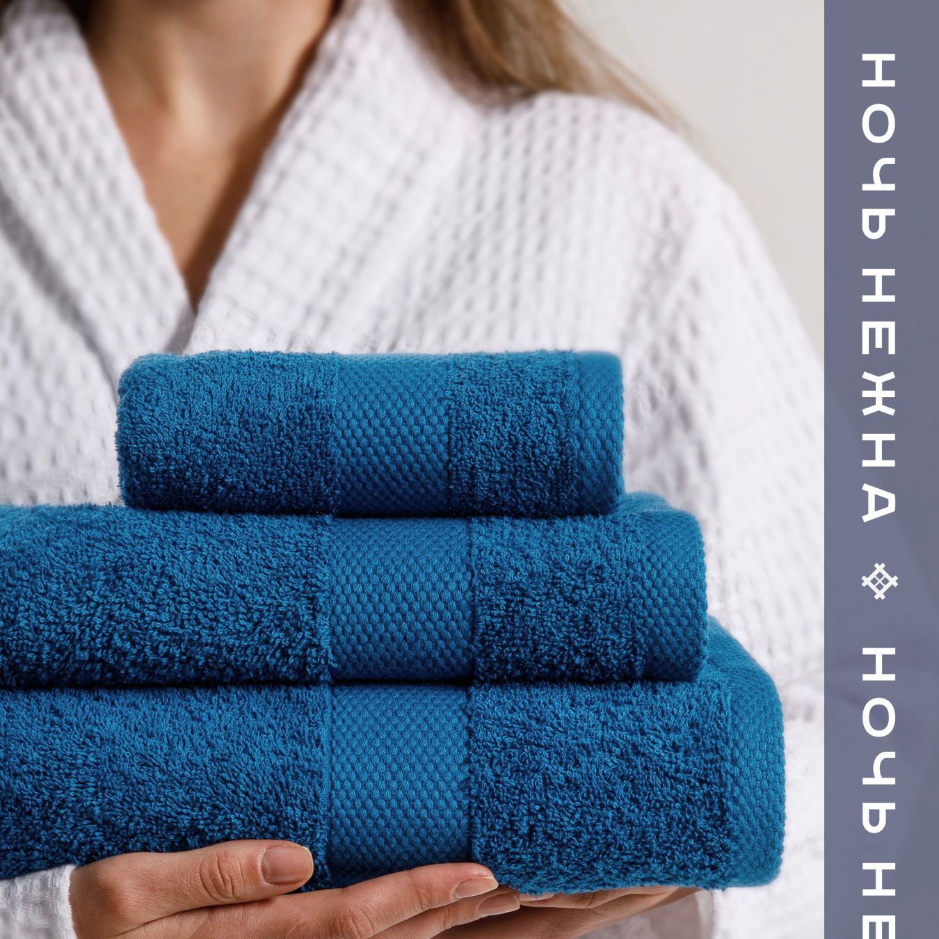 10 цен на Полотенца банные махровые набор 3 шт синий