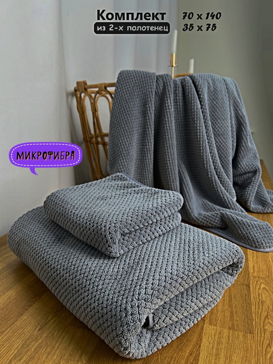 10 цен на Комплект из двух полотенец, банное полотенце, полотенце для рук и лица, серый
