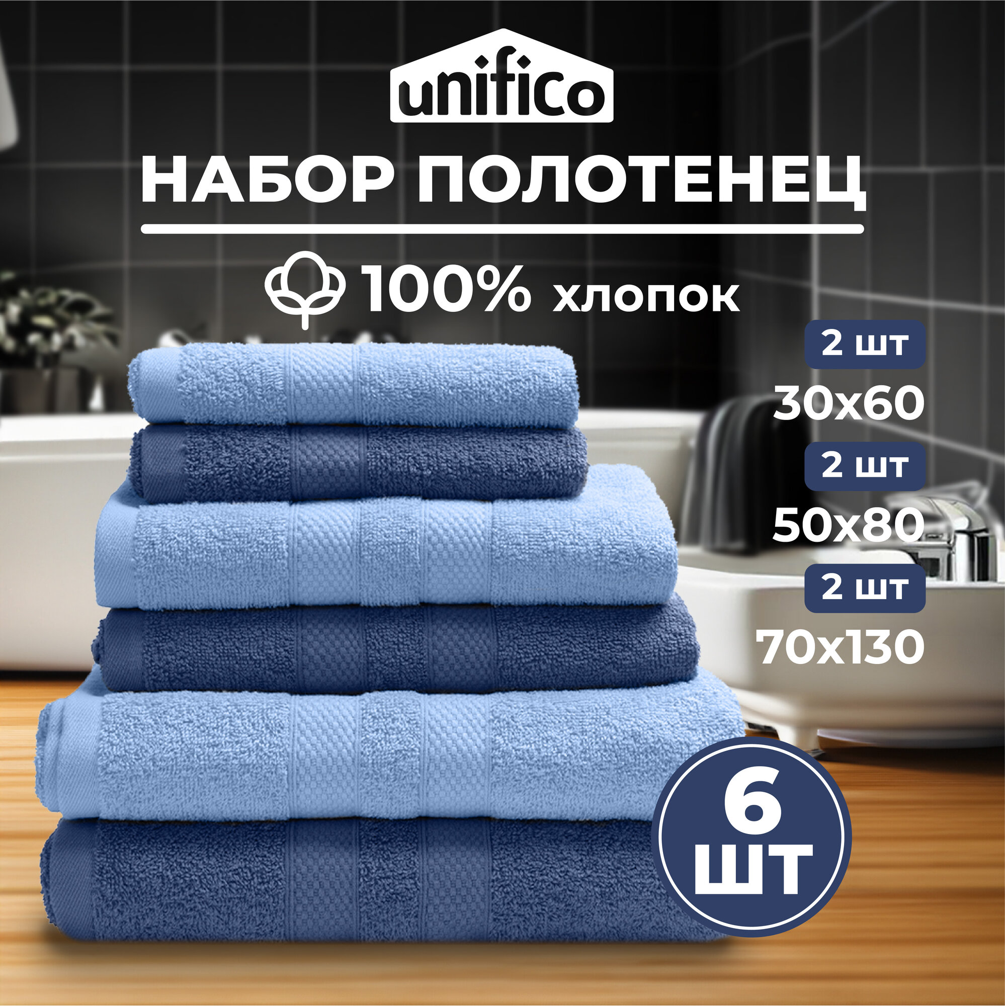 10 цен на Полотенца махровые Unifico Natur джинс, набор из 6 шт.: 30х60 2 штуки, 50х80 2 шт., 70х130 2 шт.