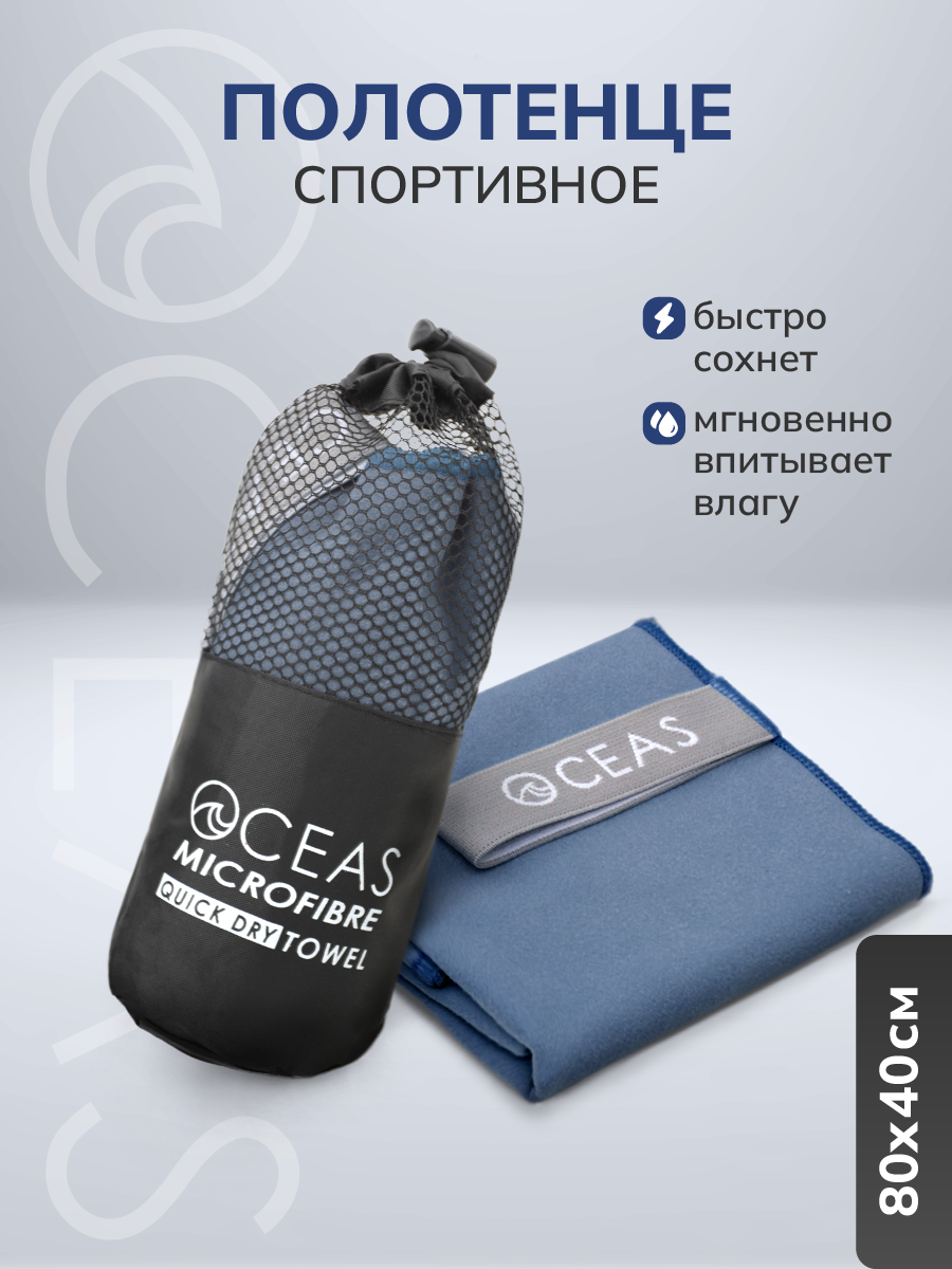 10 цен на Полотенце спортивное OCEAS из микрофибры ,быстросохнущее для фитнеса и йоги, 80х40 см, темно-синий
