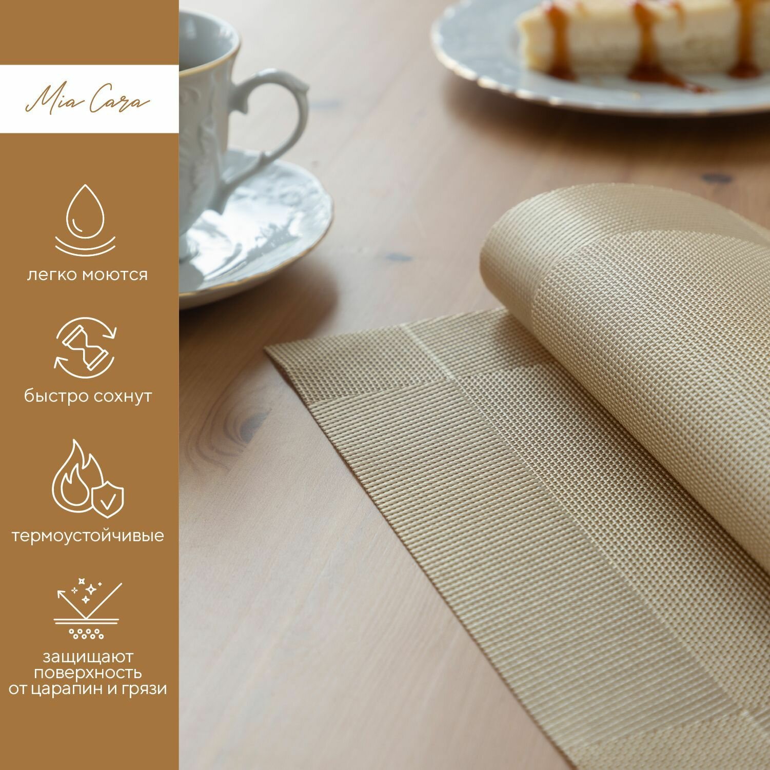 Комплект салфеток/ плейсматов /подставок пластик (4 шт.) 38x38 "Mia Cara" цвет золотистый 457 ₽
