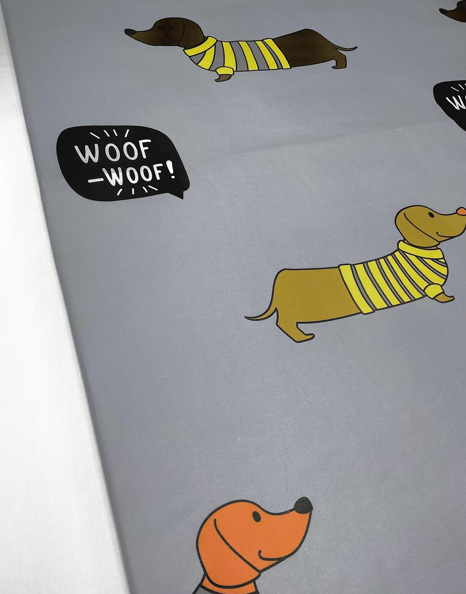 Ткань Поплин с принтом для постельного белья Такса / 4 п.м. / ширина 220 см / 100% хлопок / 105 гр. кв.м информация:
