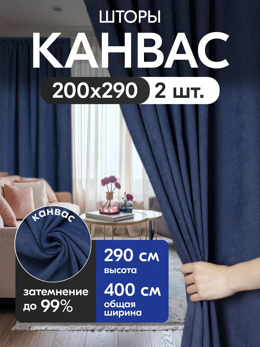 Комплект матовых портьерных штор 400x290 см, 2 штуки, канвас, цвет: синий информация: