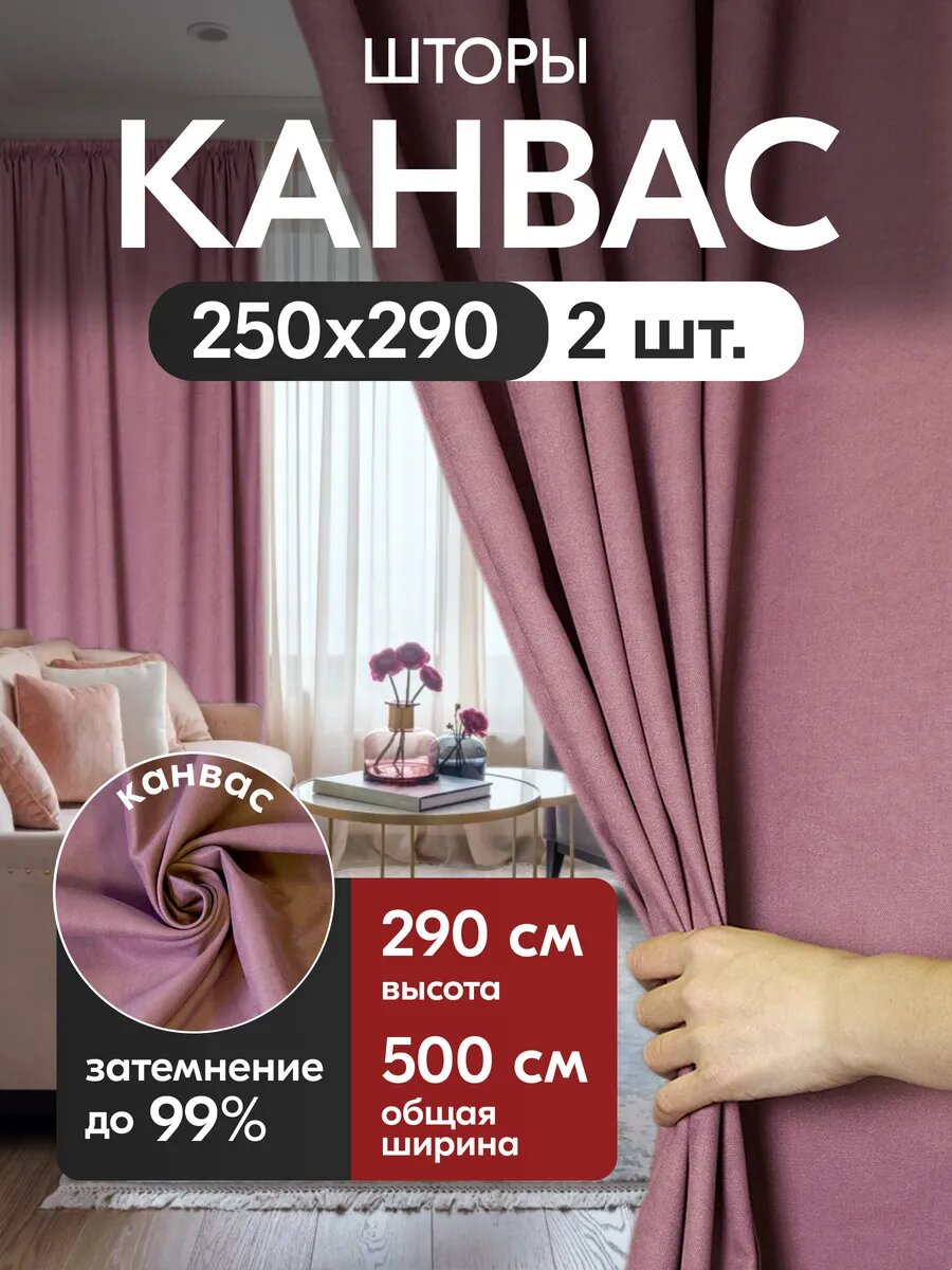 10 цен на Комплект матовых портьерных штор 500x290 см, 2 штуки, канвас, цвет: розовый кварц