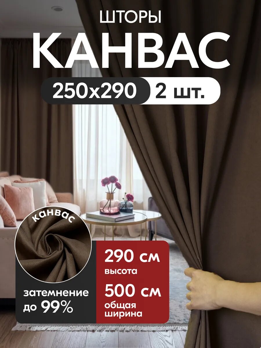 Комплект матовых портьерных штор 500x290 см, 2 штуки, канвас, цвет: коричневый информация: