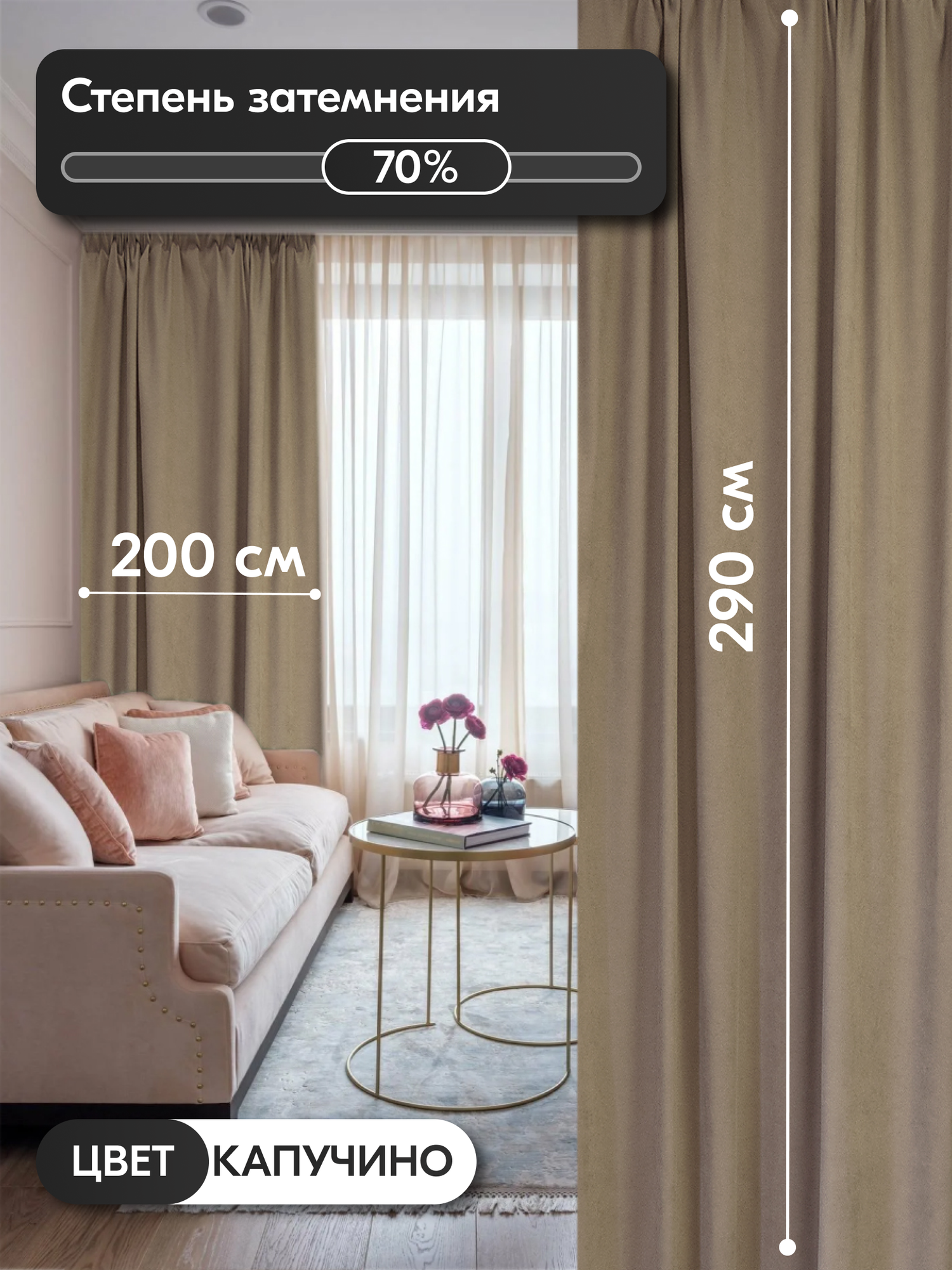 Комплект матовых портьерных штор 400x290 см, 2 штуки, канвас, цвет: капучино информация: