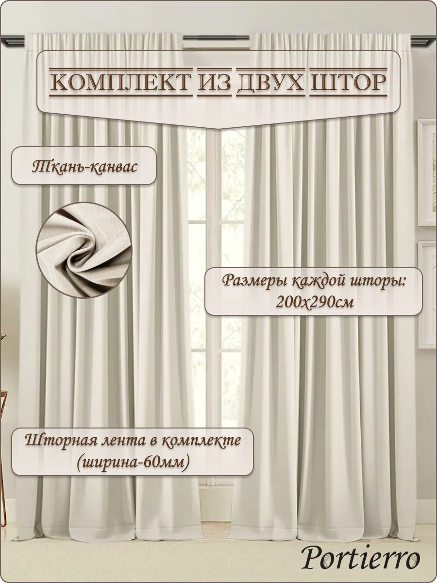 Комплект матовых портьерных штор 400x290 см, 2 штуки, канвас, цвет: айвори информация: