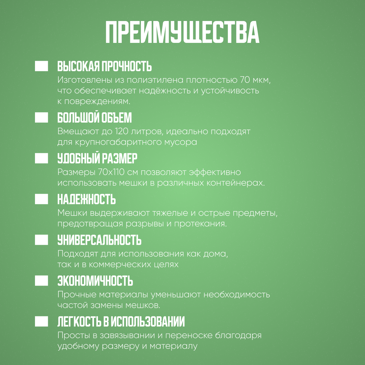 Мешки для строительного мусора, универсальные , 70 мкм, 120 литров, 10 штук информация: