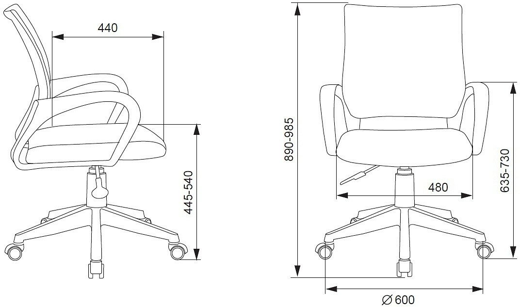 | Регулировка | высоты подлокотников / высоты сиденья |