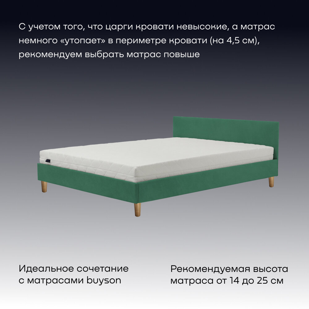 Двуспальная кровать buyson BuyStyle 200х140 см, изумруд, микровелюр 21 449 ₽