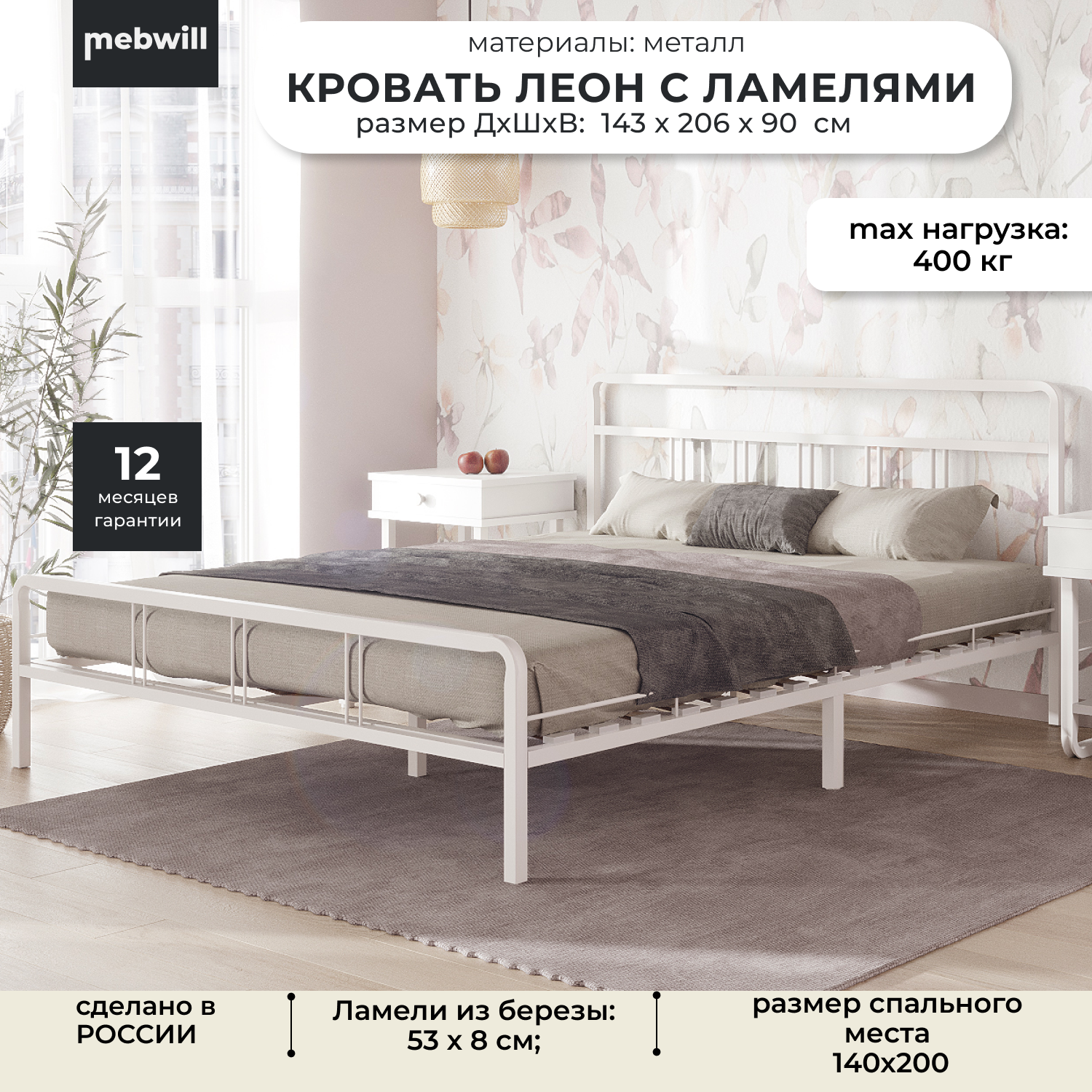 10 цен на Кровать металлическая двуспальная с ламелями Форвард Леон 140*200 Кремово-Белая