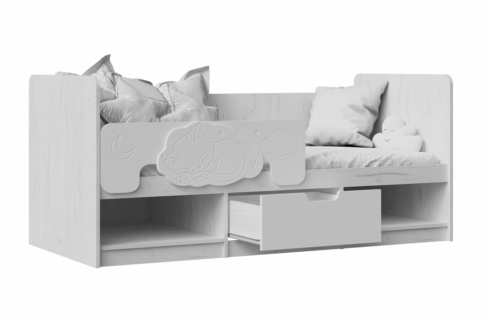 Кровать детская с бортиком Нонтон Юниор-4, 80*160 см, дуб крафт белый / шарли белый 12 590 ₽