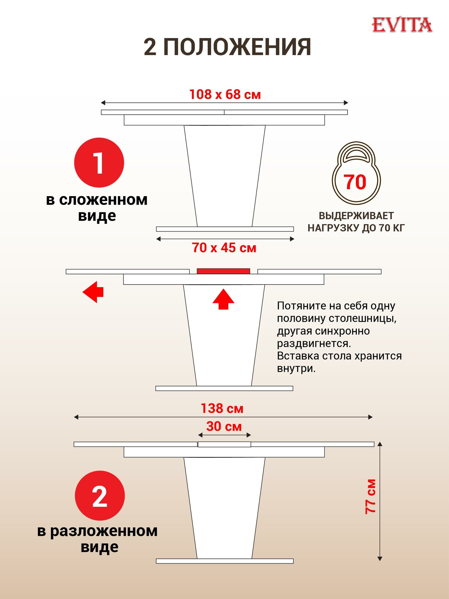 Отзывы на Стол кухонный раздвижной EVITA 1080 (1370)*680*770 на одной ножке пластик белый мрамор / обеденный