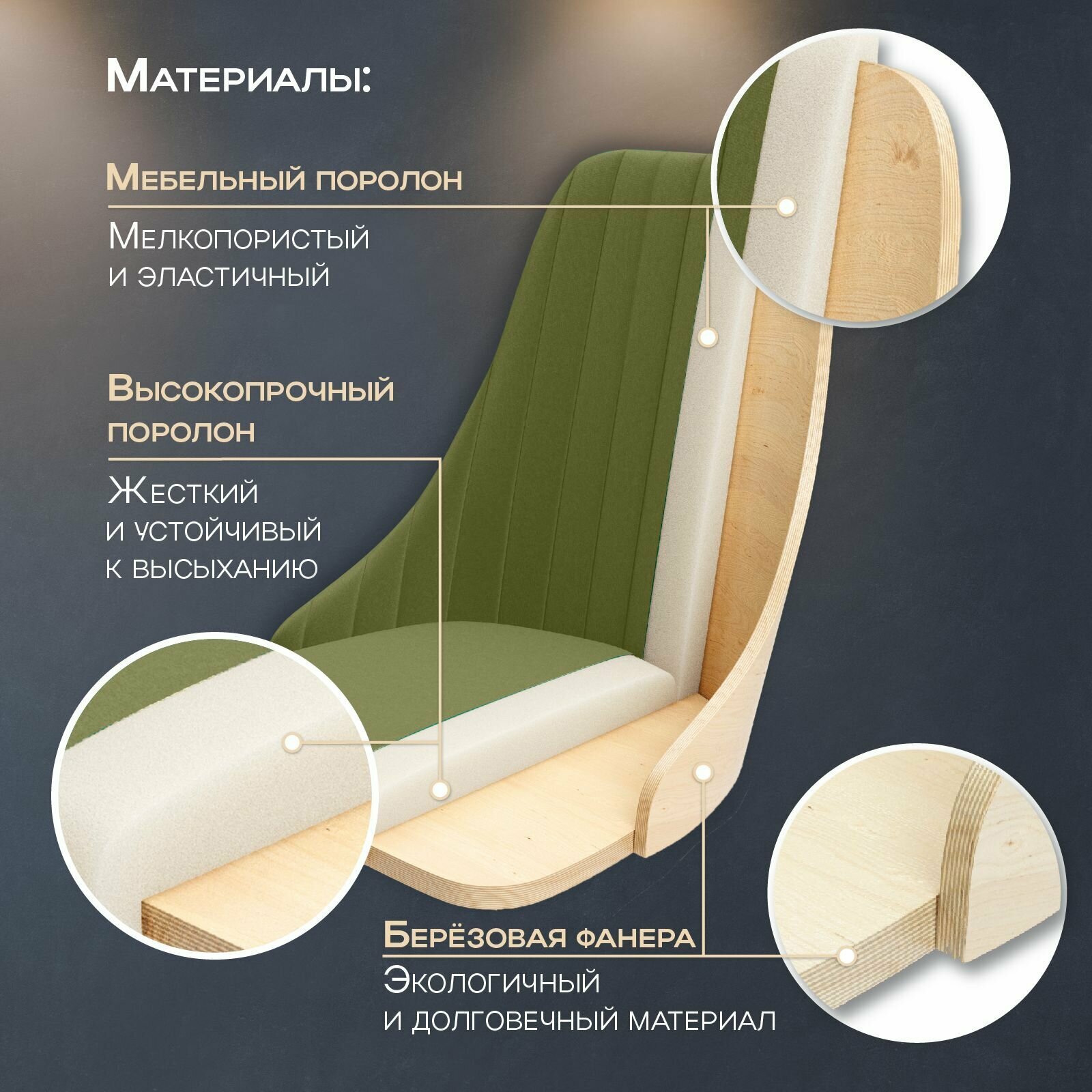 Барные стулья для кухни 2 штуки мягкие Лондон, обеденная группа, для дома, гостиной, кухонные стулья со спинкой, высокие ножки, обивка вельвет оливковый, АМИ мебель, Беларусь информация:
