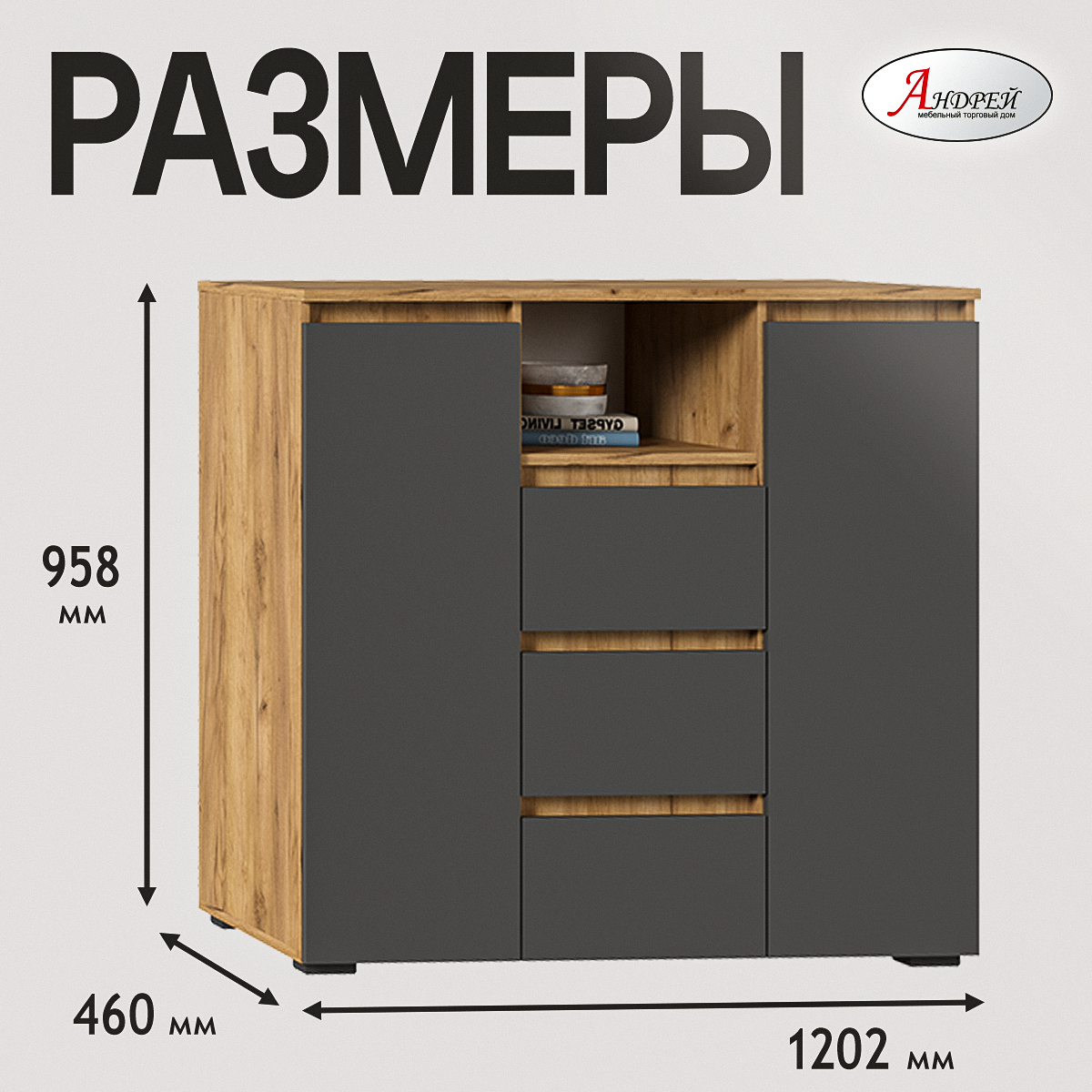Комод Бася, ЛДСП, серый/дуб крафт белый, 99x120x41,4 см., для дома и дачи 16 404 ₽