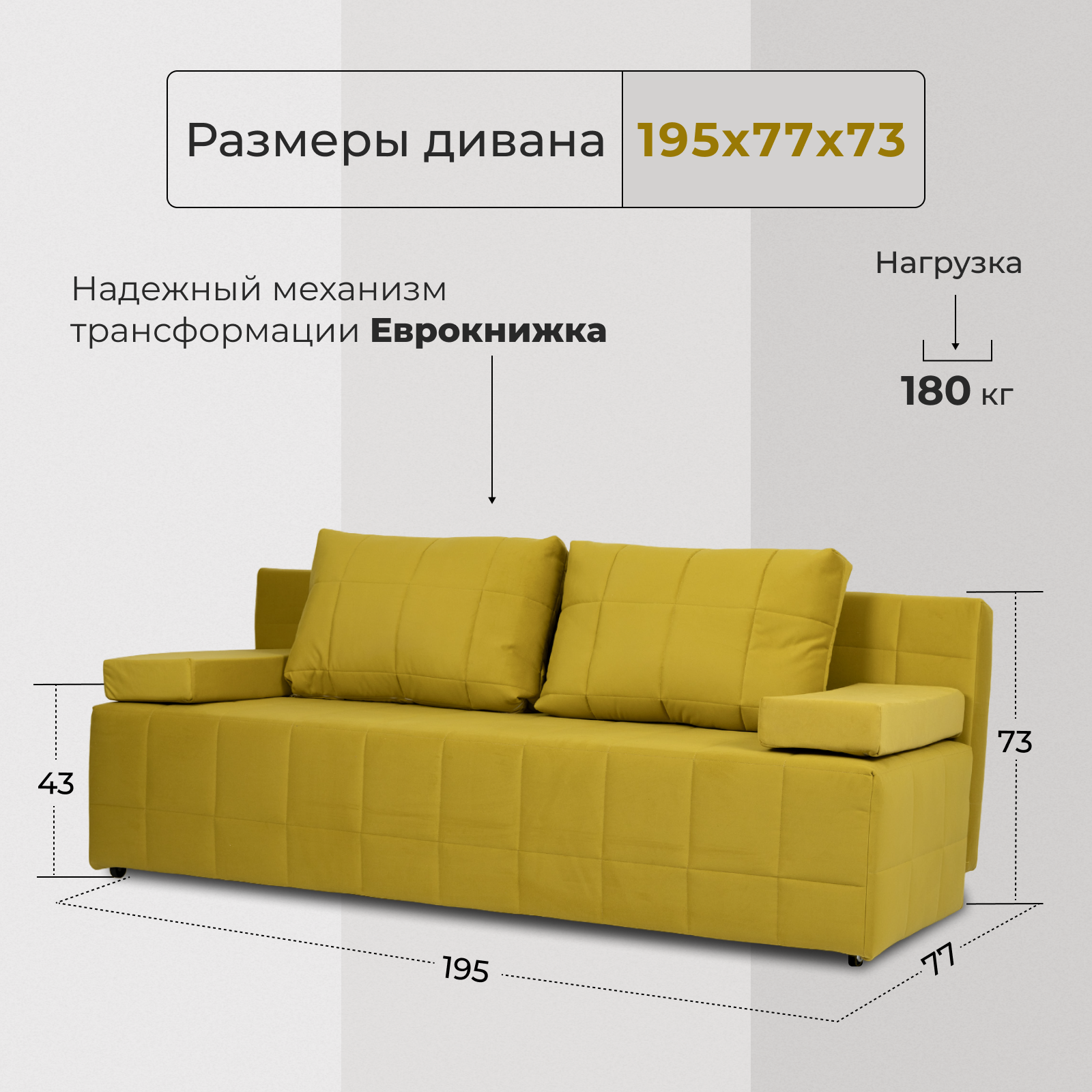 Диван-кровать Вентура, горчичный, механизм Еврокнижка 195х77х73 см информация:
