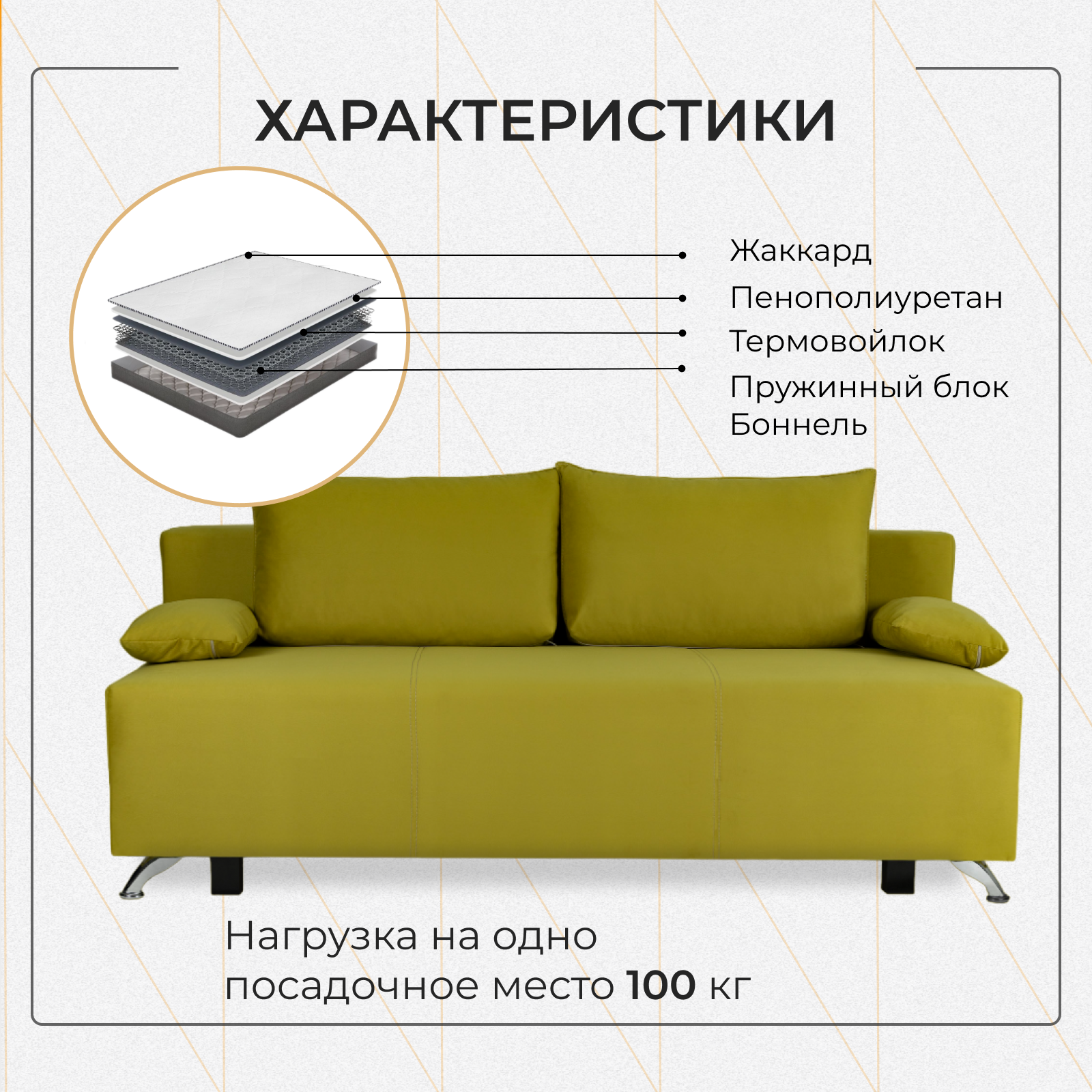Диван-кровать Лира лайт, велюр, желтый, еврокнижка, пружинный блок, Divan24 информация:
