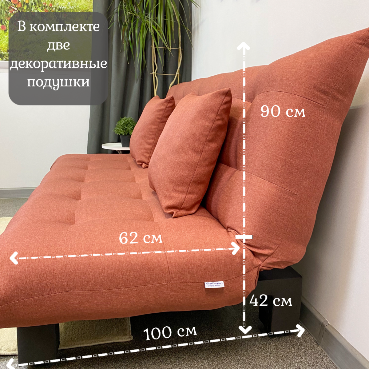 | Особенности | без подлокотников, пружинный блок, раскладная конструкция, съемные подушки |