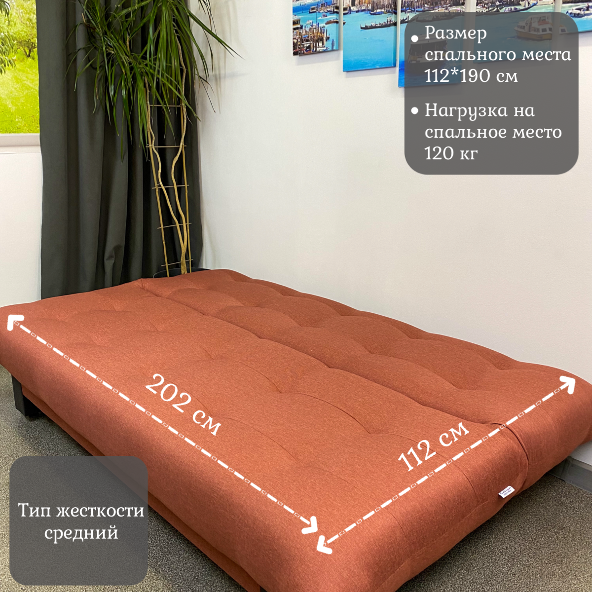 Диван EDLEN Поло Стайл, книжка, рогожка coral, 202х90х100 см, для дома, дачи и офиса информация: