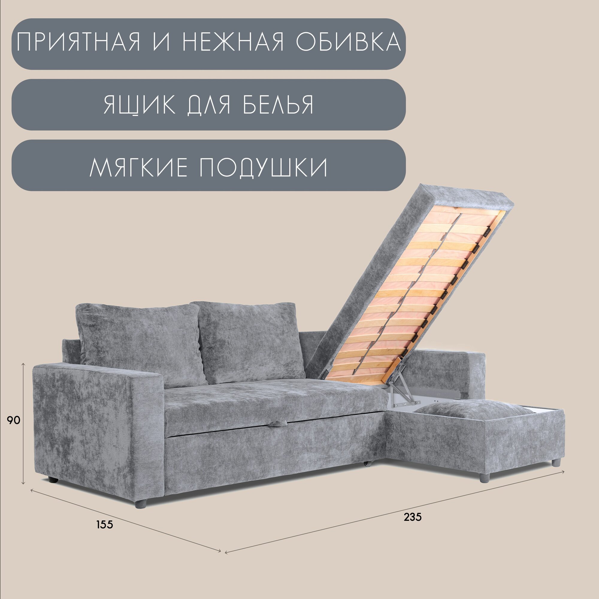Отзывы на Угловой диван-кровать, раскладной, механизм Дельфин, с ящиком для белья. Шенилл. Цвет серый