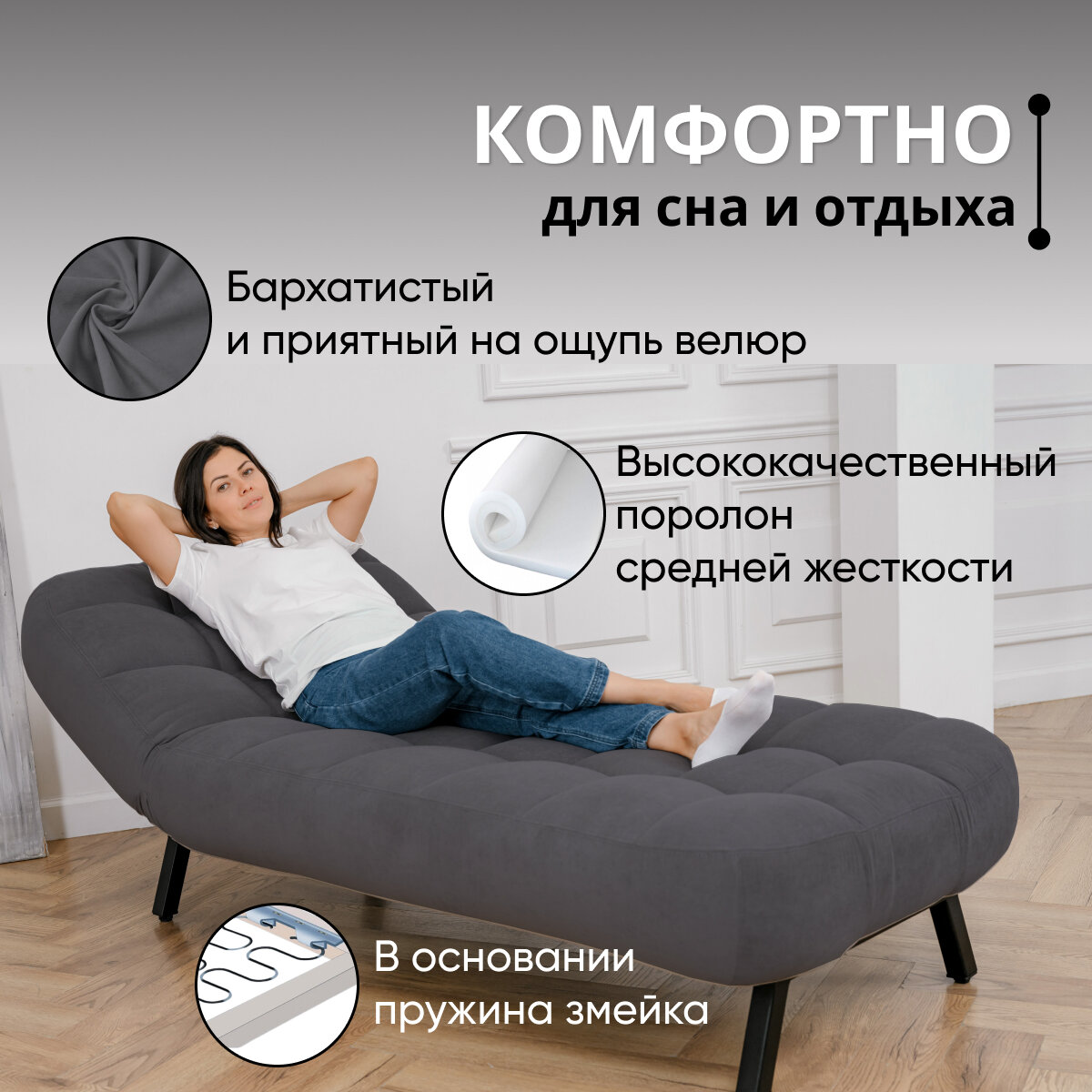 10 цен на Кушетка оттоманка Brendoss 310 лофт раскладная регулируемая клик-кляк на металлокаркасе материал износостойкий велюр, цвет графит