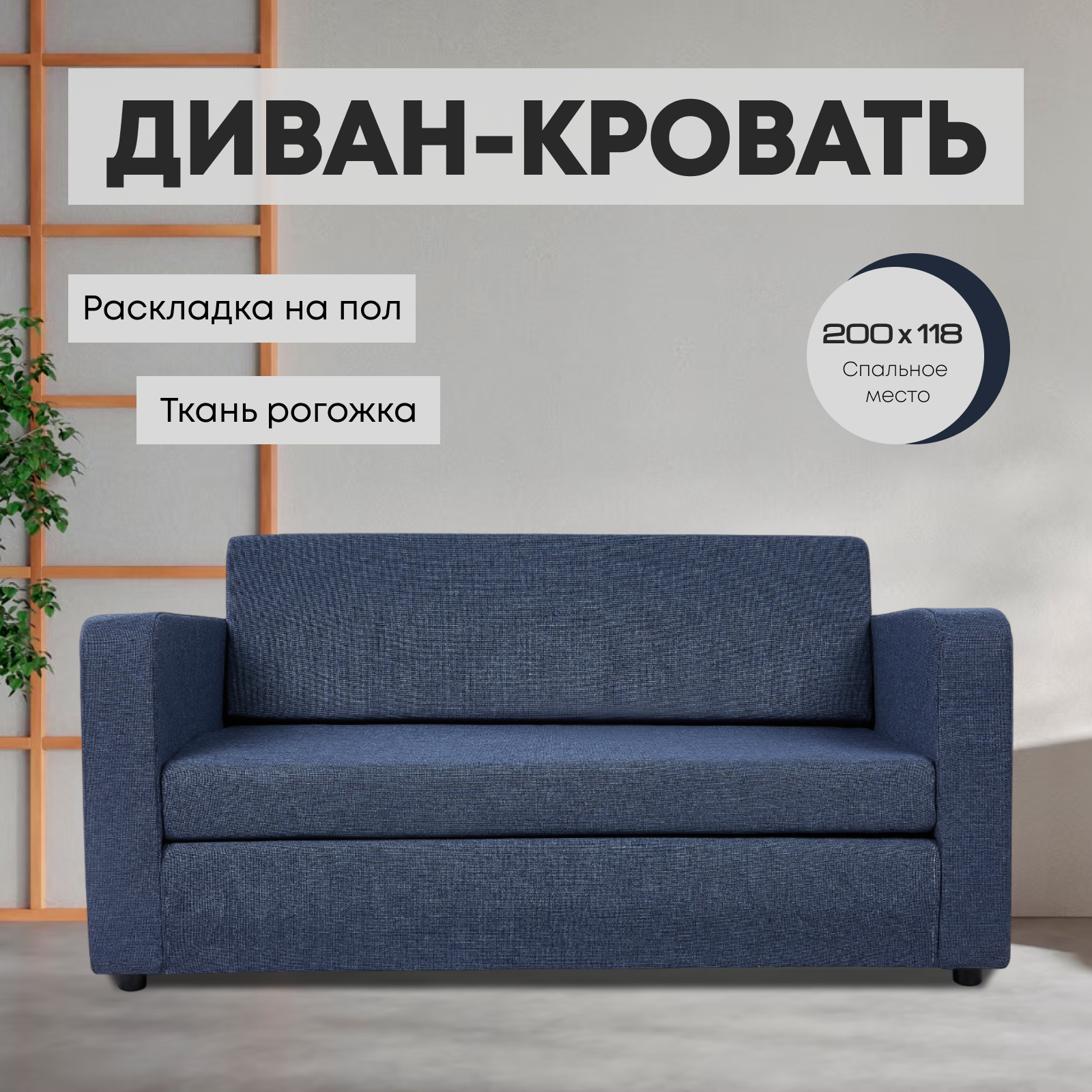 Диван-кровать Сольста синий, рогожка, раскладка на пол информация: