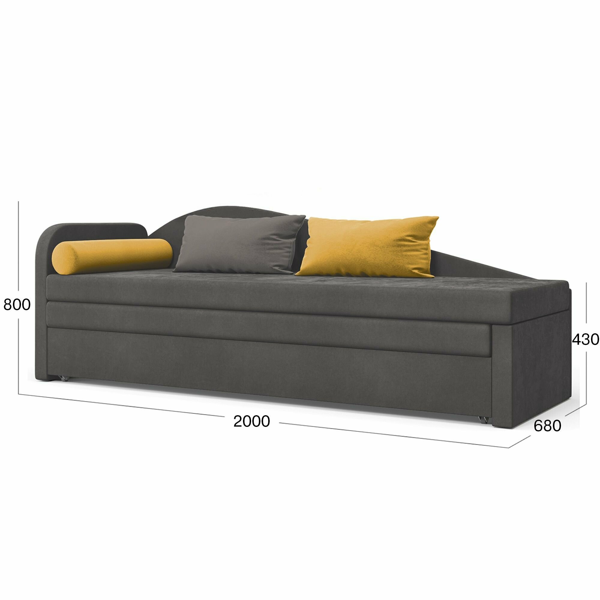 Диван-кровать, кушетка, прямой диван Beneli арчи (правый), раскладной, с ящиком для хранения, серый, Велюр, механизм Выкатной, 200х68х80см, 1шт 34 404 ₽