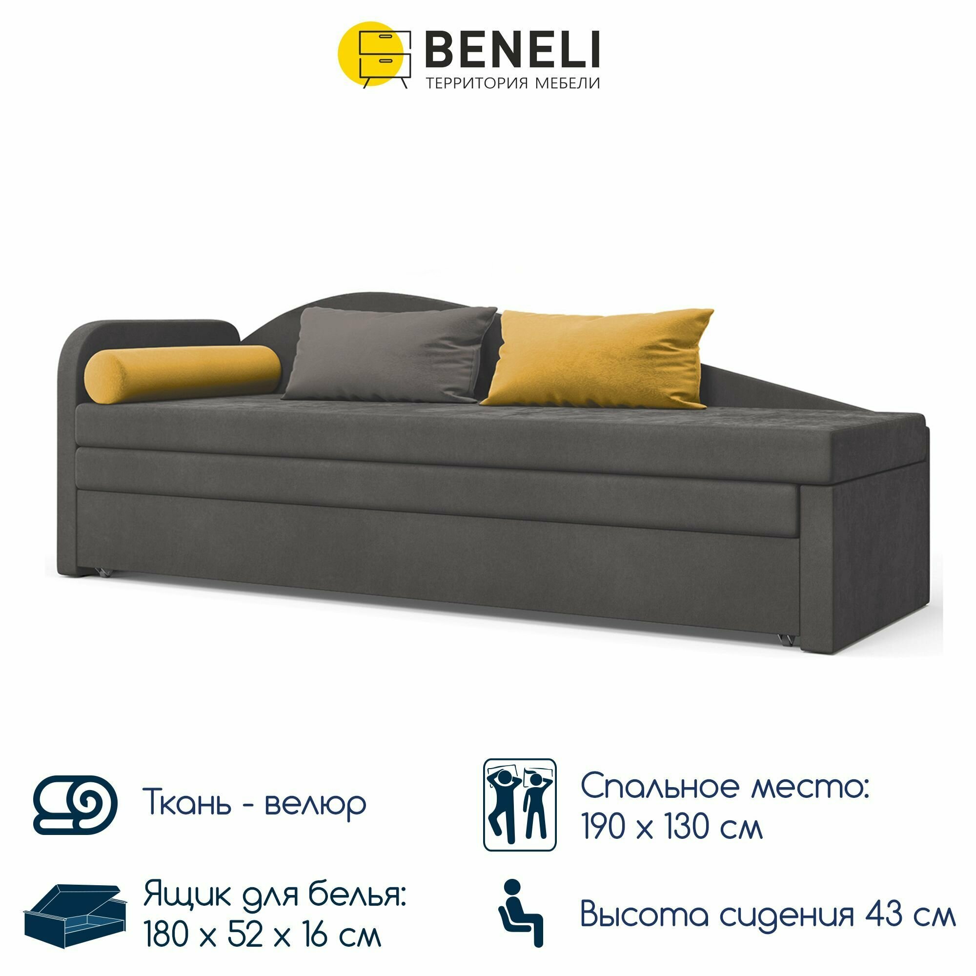 Диван-кровать, кушетка, прямой диван Beneli арчи (левый), раскладной, с ящиком для хранения, серый, Велюр, механизм Выкатной, 200х68х80см, 1шт информация:
