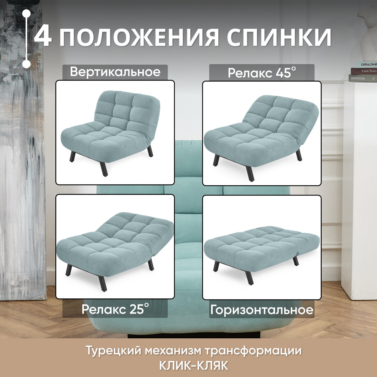 Кресло Brendoss 306 раскладное с регулируемой спинкой лофт, механизм клик-кляк, материал износостойкий велюр, мятный 24 650 ₽