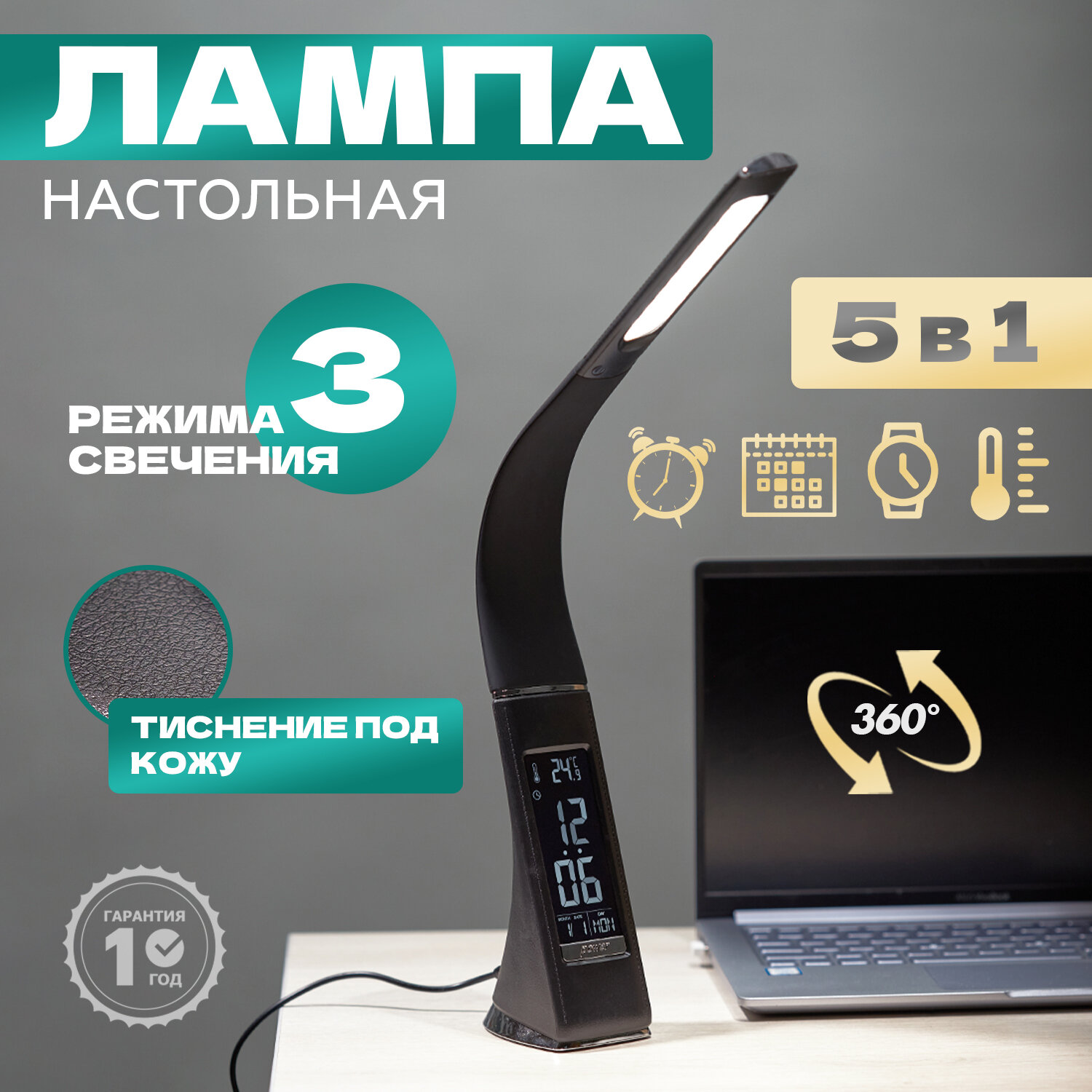 10 цен на Светильник настольный REXANT для учебы и работы, часы, будильник, термометр, календарь