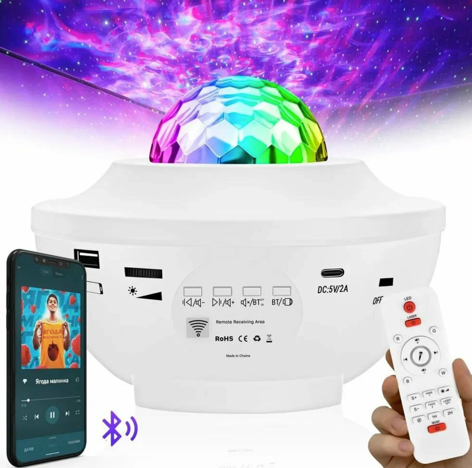 Проектор звездного неба Bluetooth, 21 режим, воспроизведение музыки, с пультом управления Белый информация:
