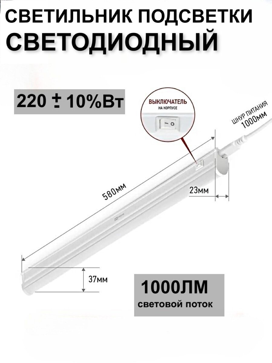 Светильник прямоугольный круглый настенный линейный 60 см. 3 шт.LED светодиодный потолочный, подсветка для спальни, для кухни, для зеркала, шкафа и гардеробной 1 600 ₽